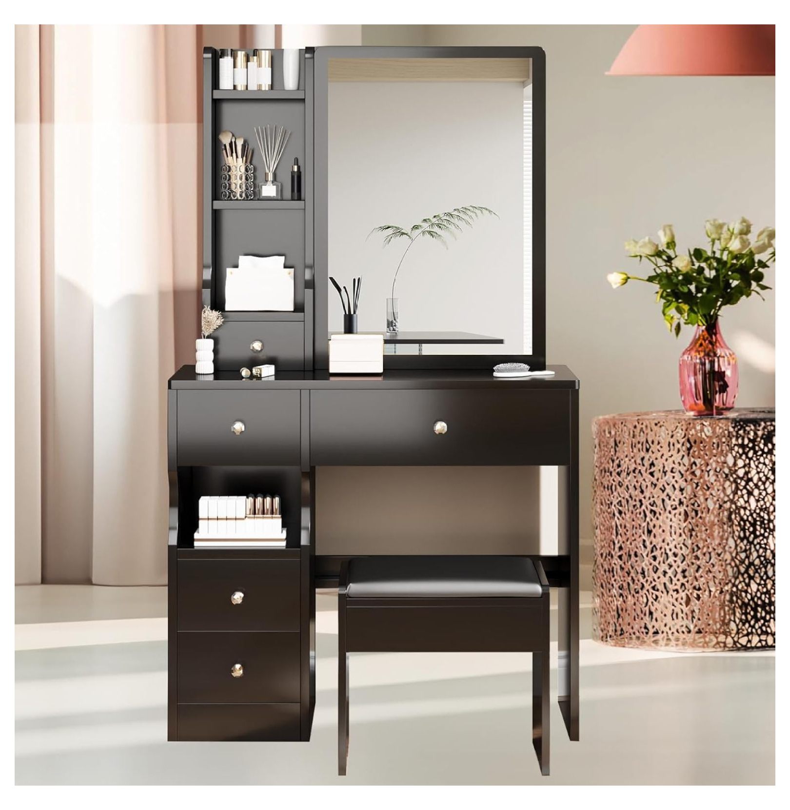 Nashville 36" White Makeup Vanity Table and Chair Glam Mirrors